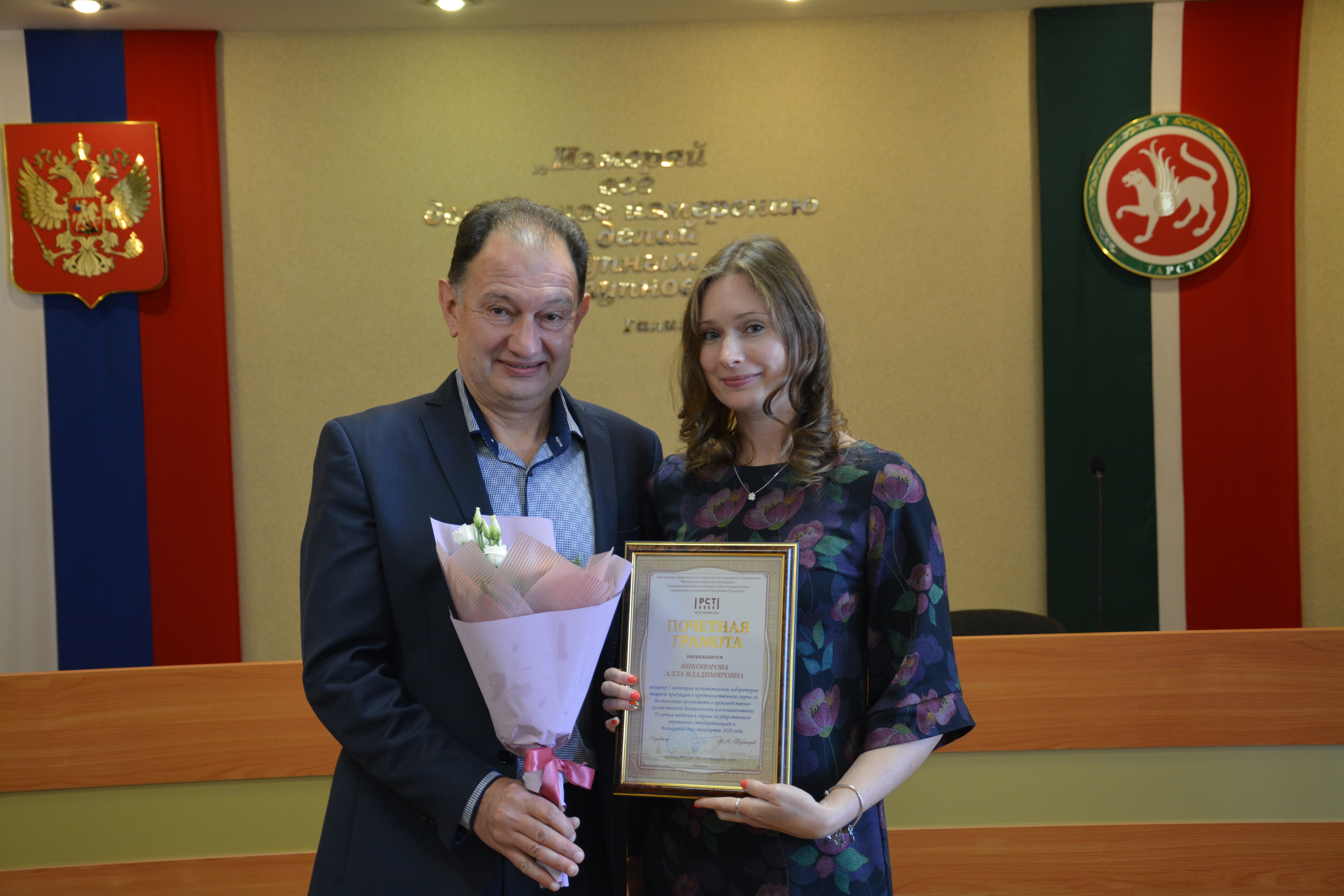 В преддверии памятной даты в Центре стандартизации и метрологии состоялось торжественное собрание, на котором ряд сотрудников учреждения за достигнутые результаты деятельности были удостоены Почетных грамот Росстандарта и памятных медалей в честь 100-летия со дня образования ТАССР.