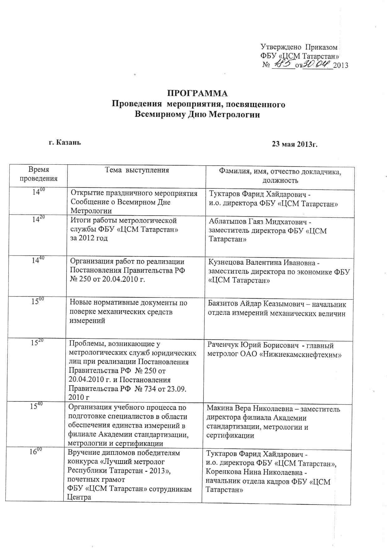 23 мая 2013 года в 14:00 в конференц-зале ФБУ «ЦСМ Татарстан» состоится заседание Совета метрологов Республики Татарстан, посвященное Всемирному дню метрологии.